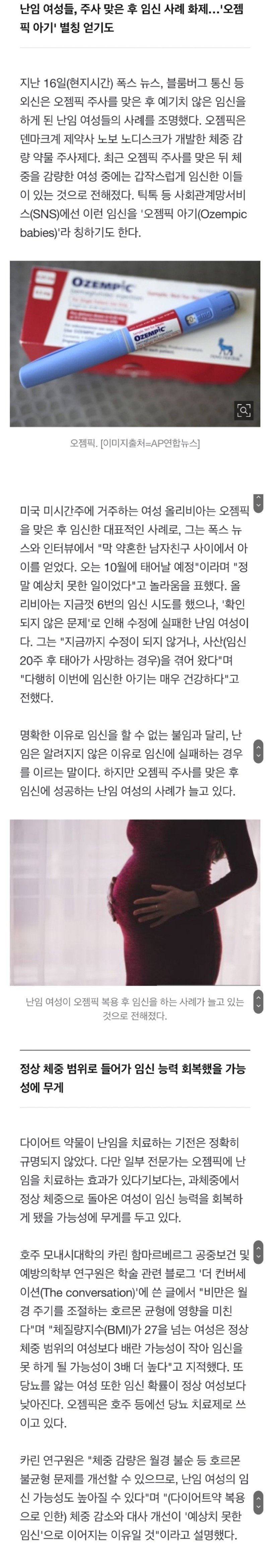 "살 빼려고 맞았는데 아이가 생겼어요"?난리난