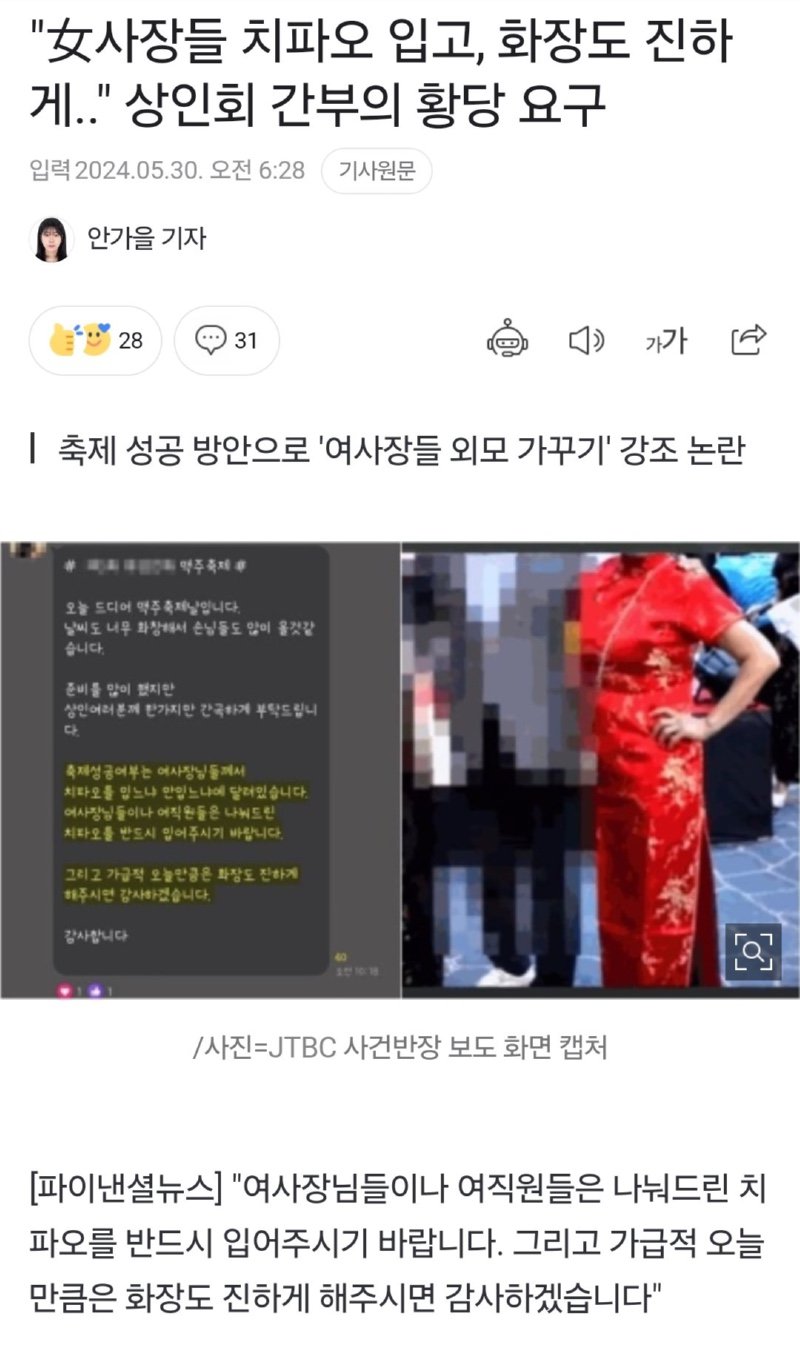 "여사장들은 치파오를 입고 화장을 해라" 상인회 간부의 황당 요구