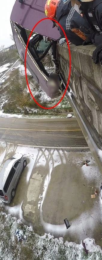 눈길 교통사고로 11m 높이 교량에서 떨어질 뻔한 요구조자를