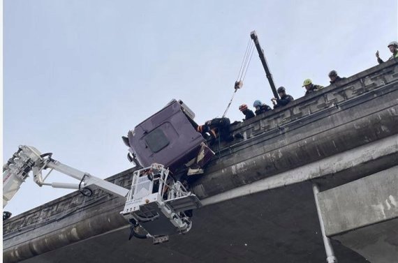시간이 흐르며 차체 일부가 11m 교량 아래로 떨어지고,